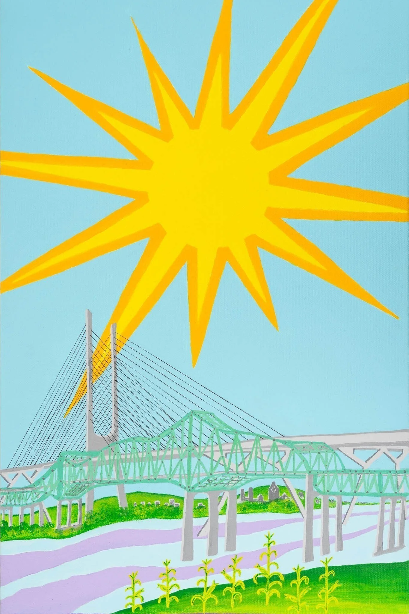 Painting the old Samuel du Champlain Bridge reminded me of the history of the city, province, and country. Representing our Confederacy’s nation-builders is a privilege. I honour my lake?nih’k^ who strode across those beams in work boots.